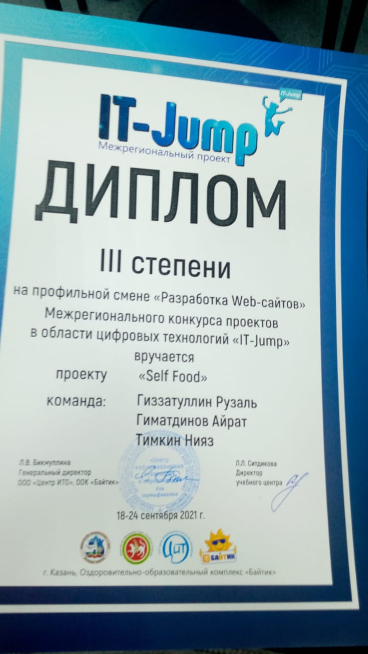 Чара 18-24 сентябрь көннәрендә «Байтик» компьютер лагере базасында узган «IT-Jump»цифрлы технологияләр өлкәсендәге проектлар төбәкара конкурсы кысаларында узды. Смена барышында Айрат Web-программалаштыру – дизайн, back-end һәм front-end эшләнмәләрендә күнекмәләр алды. Web-программалаштыруның төп телләре белән танышты – PHP, HTML, CSS. Смена ахырында проект якланды, анда Айрат командасы III урынны яулады.