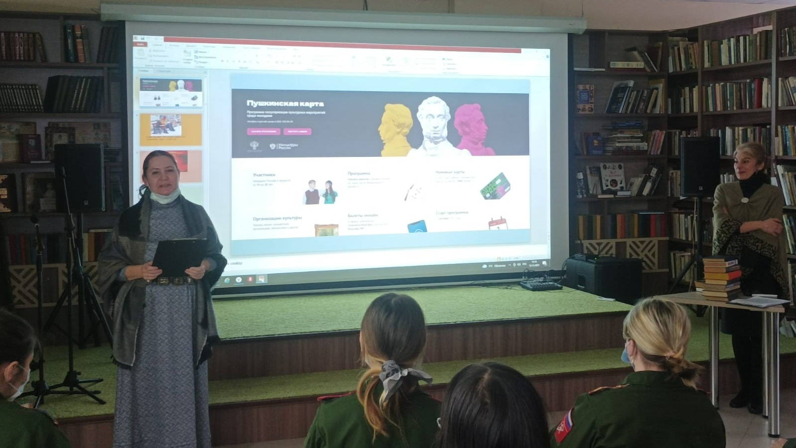 12 ноябрьдә әлеге проект кысаларында П.А.Карпов исемендәге кадет интернат мәктәбе укучылары өчен «Книга на экране» библиогиды - яшьләр өчен китап юлкүрсәткече уздырылды, анда күренекле әдәби әсәрләр киносәнгать призмасы аша актуальләштерелде. Китап уку процессында кеше авторның язучылык осталыгы һәм үз фантазиясе тоташкан аерым дөньяга чума. Кино шундук якты, күләмле картина тудыра һәм талантлы актер уены, режиссер осталыгы, нәтиҗәле оператор эше ярдәмендә тамашачыны сюжетның ныгытылган перипетияләренә тулысынча чумдыра. Бик еш укучыда китапка карата кызыксыну аны экранлаштырганнан соң барлыкка килә. Күп кенә кешеләр китапны фильм каралганчы ук укырга кирәк дип саный, чөнки соңыннан актерларны һәм аларның романның төп геройлары белән уенын ассоциацияләү кыен булачак.