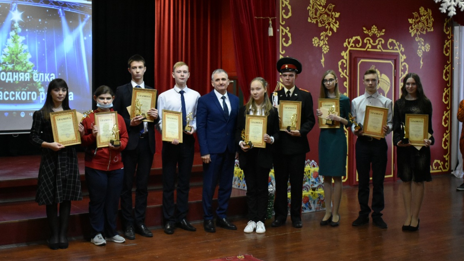 Районның иҗтимагый тормышында актив катнашкан өчен Спас муниципаль районы башлыгының Рәхмәт хаты, истәлекле бүләкләре һәм кубоклары, республика һәм район конкурсларында югары нәтиҗәләргә ирешкән өчен Фәргать Вәгыйз улы Мөхәммәтов Анна Акулинаны, Алина Ризванованы, Мария Сидорованы, Роман Феоктистовны һәм Александр Филипповны бүләкләде.