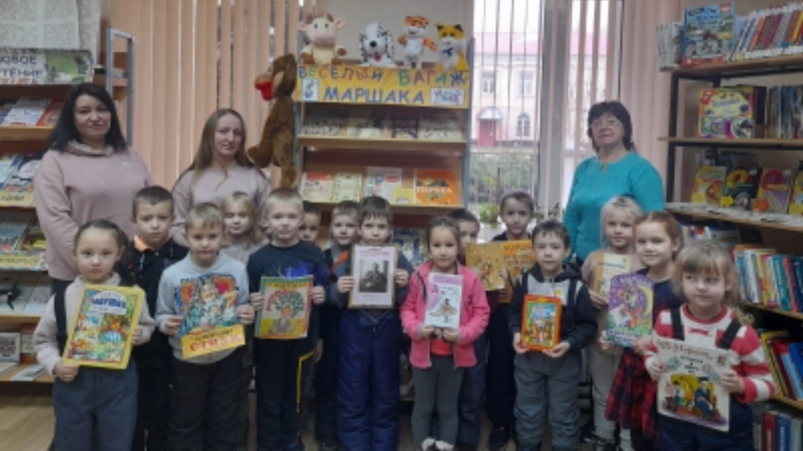 Чара башында балалар С.Я. Маршакның тормышы һәм иҗаты турында әңгәмә тыңладылар, ә аннары китапханәче белән бергә авторның китап битләре буйлап мавыктыргыч сәяхәткә чыктылар. Балалар язучының «Маршакның күңелле багажы»күргәзмәсендә тәкъдим ителгән китаплары белән таныштылар.