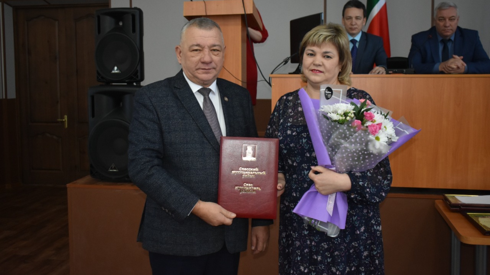 Җирле үзидарә органнарында күпьеллык намуслы хезмәте өчен район башлыгының Мактау грамотасы белән Татарстан Республикасы Спас муниципаль районы Башкарма комитетының баш архитекторы секторы мөдире Г.В. Ермилина бүләкләнде.