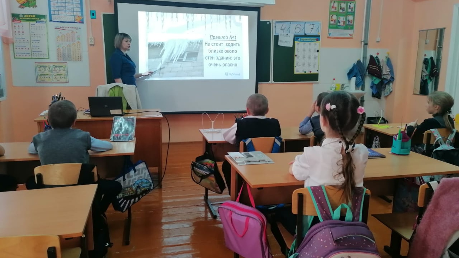 Мәктәп укучылары өчен "Түбәләрдән боз сөңгеләре һәм кар төшү хәвеф-хәтәре" темасы буенча тематик әңгәмәләр һәм класс сәгатьләре үткәрелде.