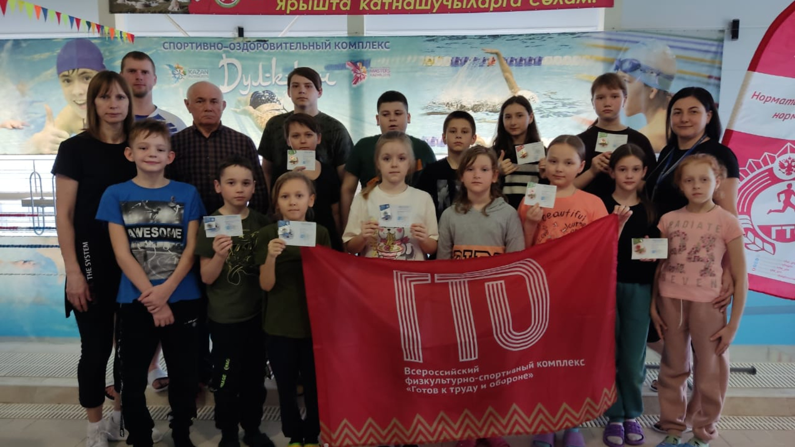 “Дулкын” бассейны бинасында “Хезмәткә һәм оборонага әзер” Бөтенроссия физкультура-спорт комплексы нормативларын уңышлы үтәгән йөзү буенча секциядән балаларны бүләкләү тантанасы узды.