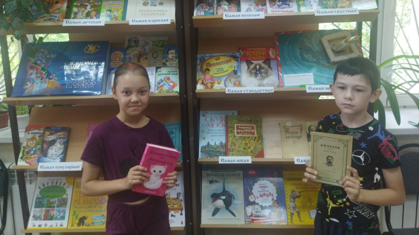 Каникуллар дәвам итә! Кояш, җәй, дуслар, яхшы кәеф, тагын нәрсә кирәк? Әлбәттә, кызыклы китап. Балалар китапханәсенең уку залында мавыктыргыч китап күргәзмәсе ачылды, ул хәтта иң таләпчән укучыны да гаҗәпләндерәчәк. Иң искесе һәм иң яңасы, иң зурысы һәм иң кечесе, иң популяр һәм иң онытылганы, иң гадәти булмаган һәм иң моңсу - менә шундый китапларны без игътибар җәлеп итәчәк һәм укучыларны шатландырачак күргәзмә өчен сайладык.