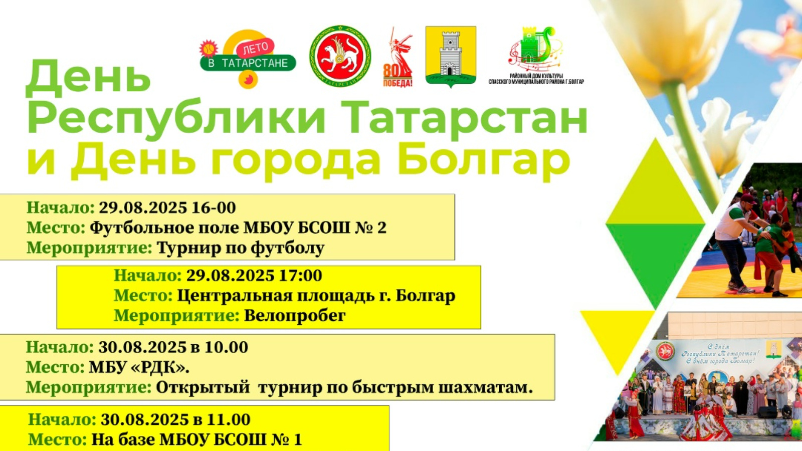 Башлана: 29.08.2025 17: 00 урын: Болгар шәһәренең үзәк мәйданы чара: велоузыш