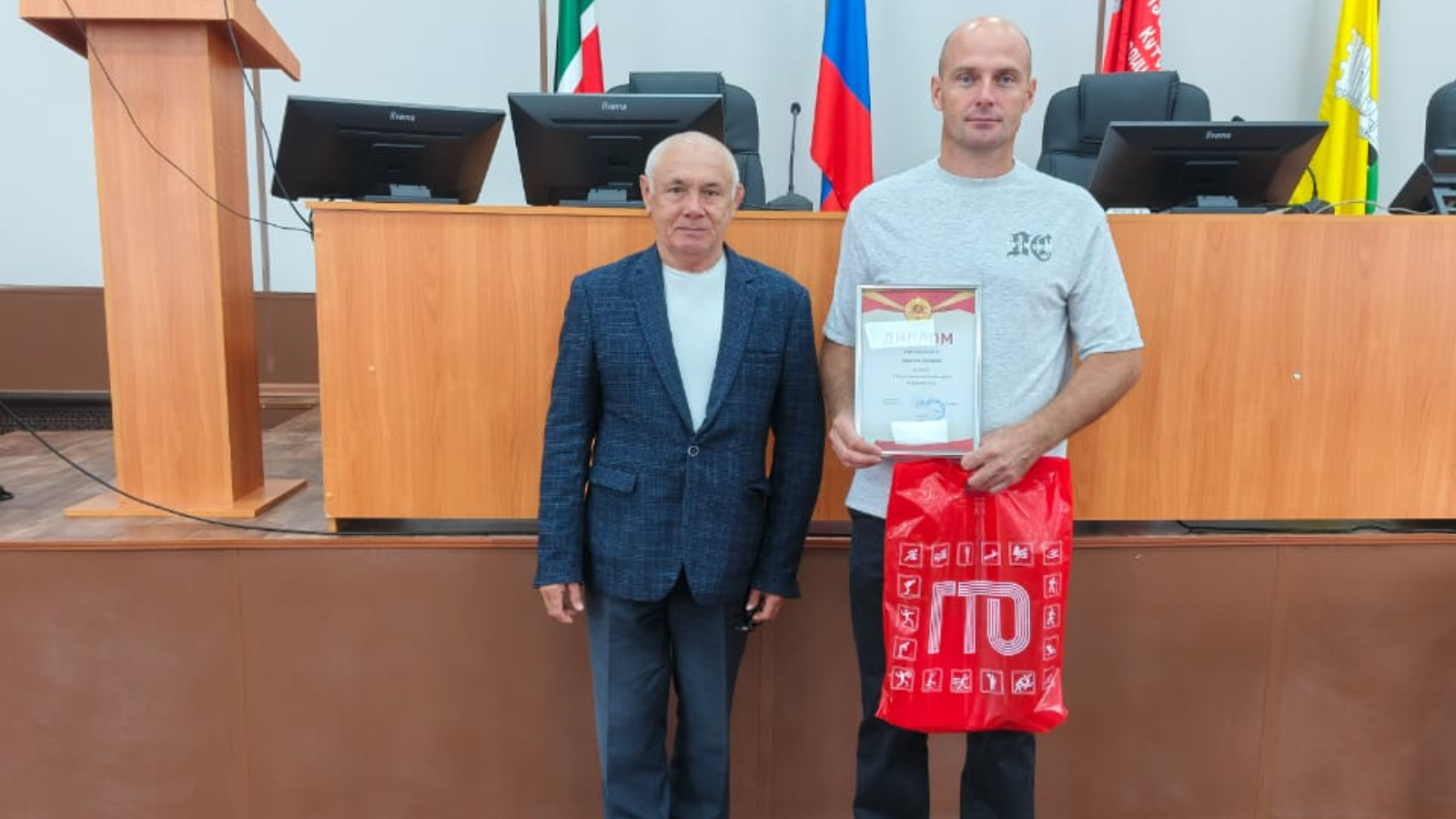 Спас муниципаль районы Башкарма комитетының актлар залында «ГТО Сабантуе 2025»республика конкурсында җиңгән өчен Дмитрий Бурумовны ГТО ВФСК дипломы һәм сувенир продукциясе белән бүләкләделәр.