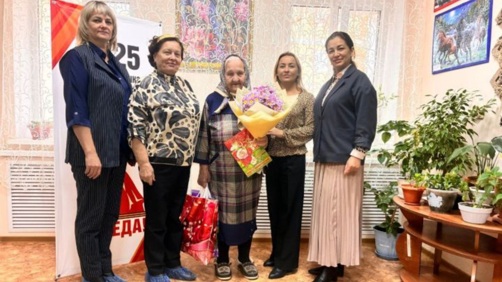 Рәисә Сергеевнага котлаулар белән Башкарма комитет җитәкчесенең социаль мәсьәләләр буенча урынбасары Гөлназ Ходжиева, ветераннар оешмасы рәисе Татьяна Бурумова, шулай ук социаль яклау хезмәте вәкилләре мөрәҗәгать итте. Тантанада гаепле хатынга чәчәкләр һәм истәлекле бүләкләр тапшырдылар, ныклы сәламәтлек, иминлек һәм тирә-юньдәгеләрнең игътибарын теләделәр.