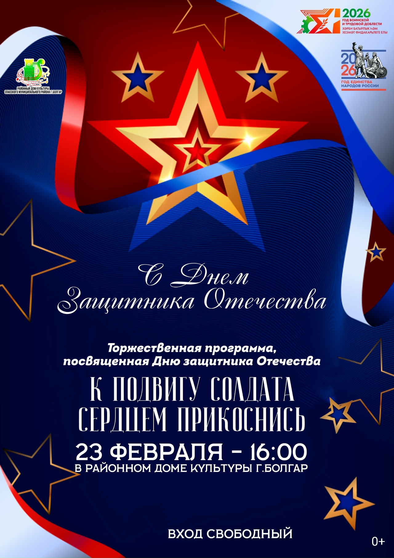 23 Февраль - 16:00 Болгар шәһәренең Район мәдәният йортында