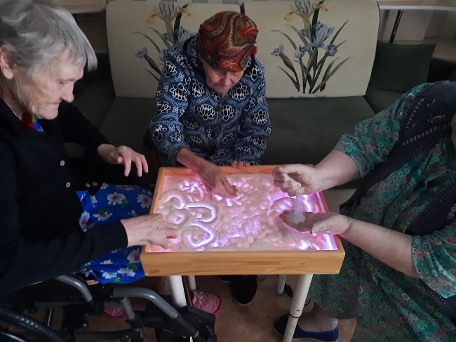Спас интернат-йортында гамәлгә кертелгән ком технологиясе киң кулланыла. Бу метод хәтер һәм вак моториканың үсешенә ярдәм итә, кешенең эмоциональ халәтен тотрыкландыра.